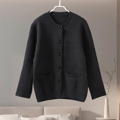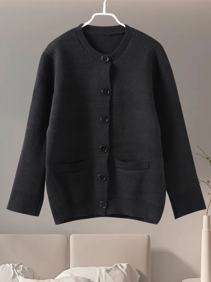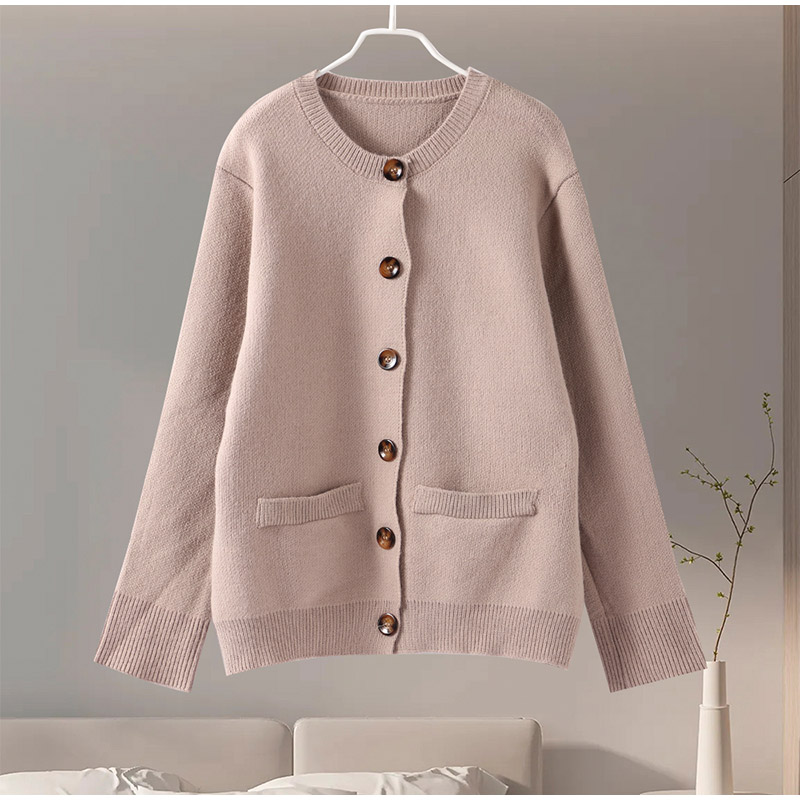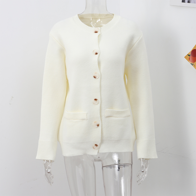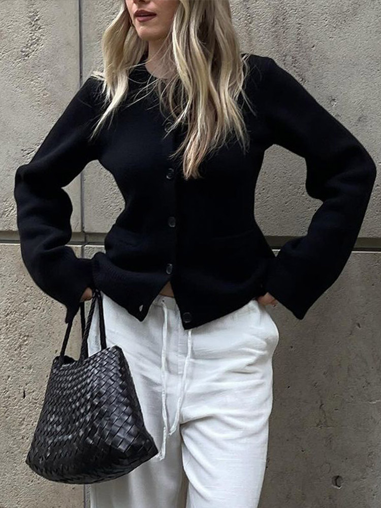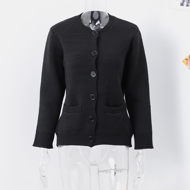 style 2: Women Solid Slim O-neck Long Sleeves Single Breasted Pocket Female Coa