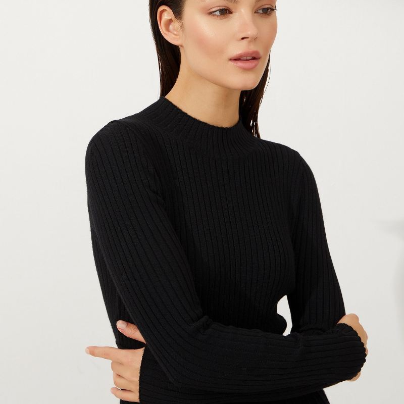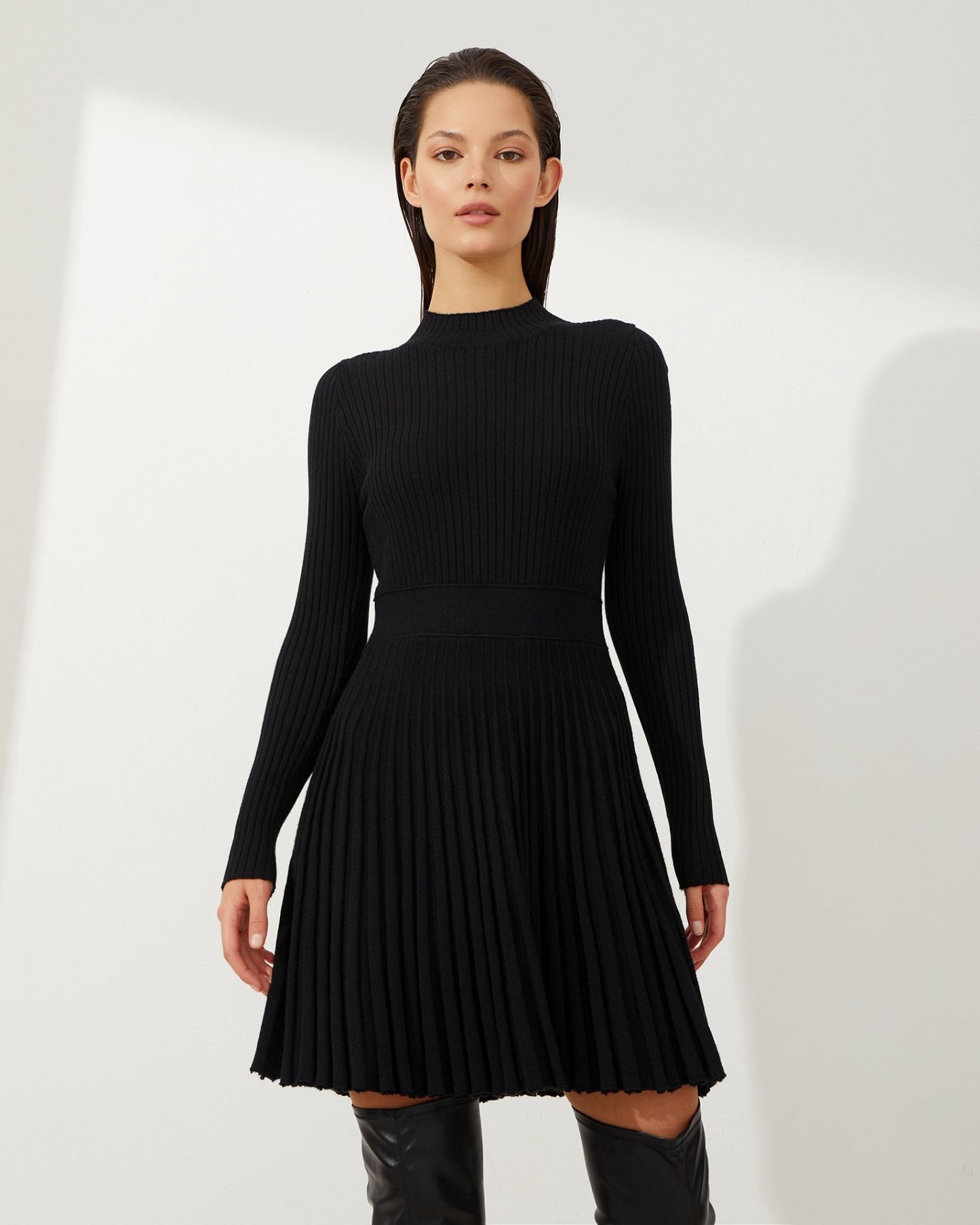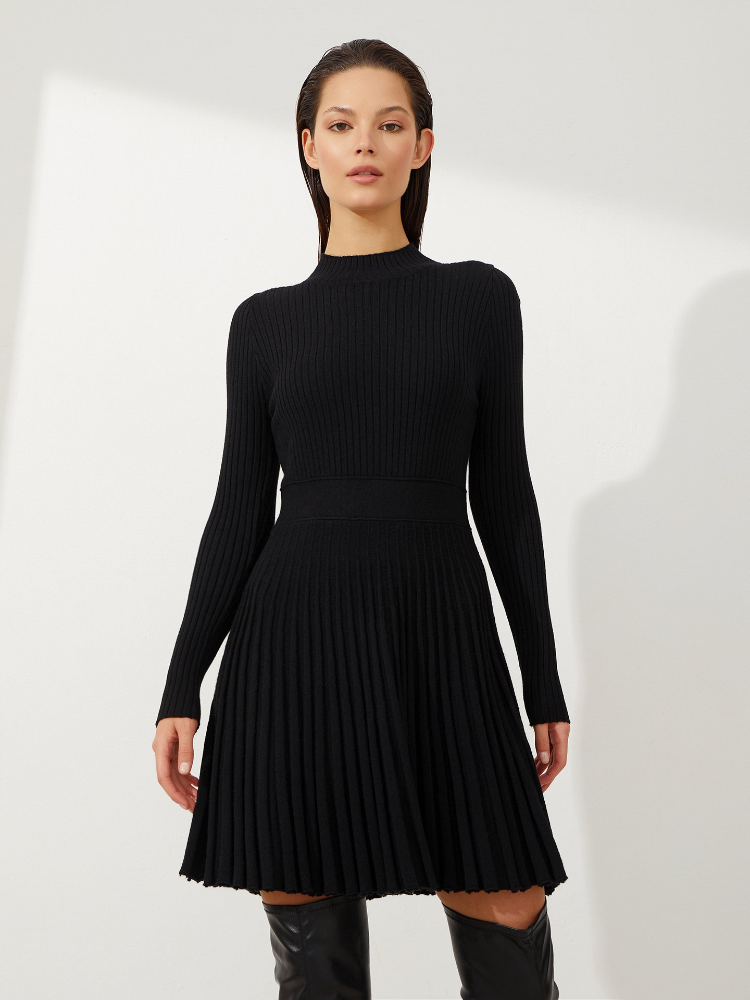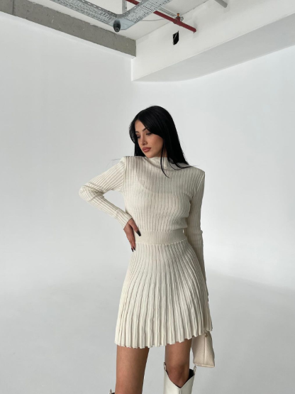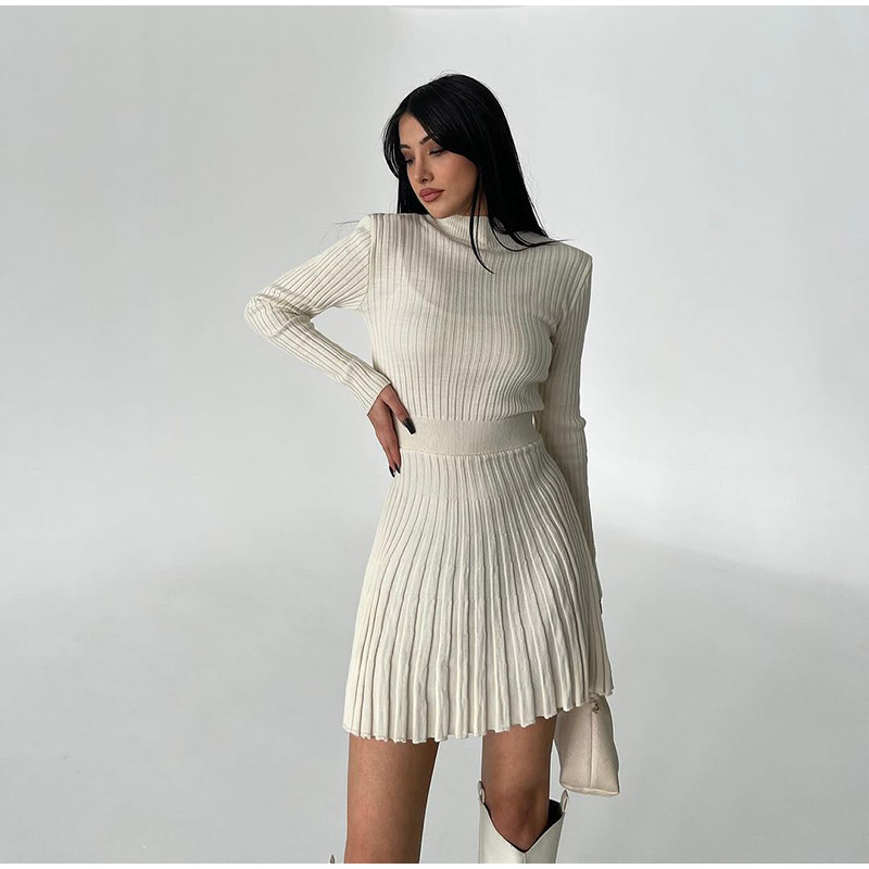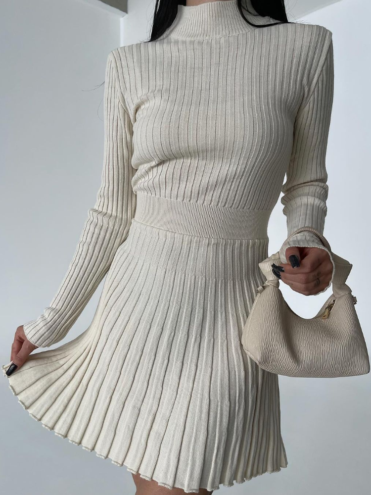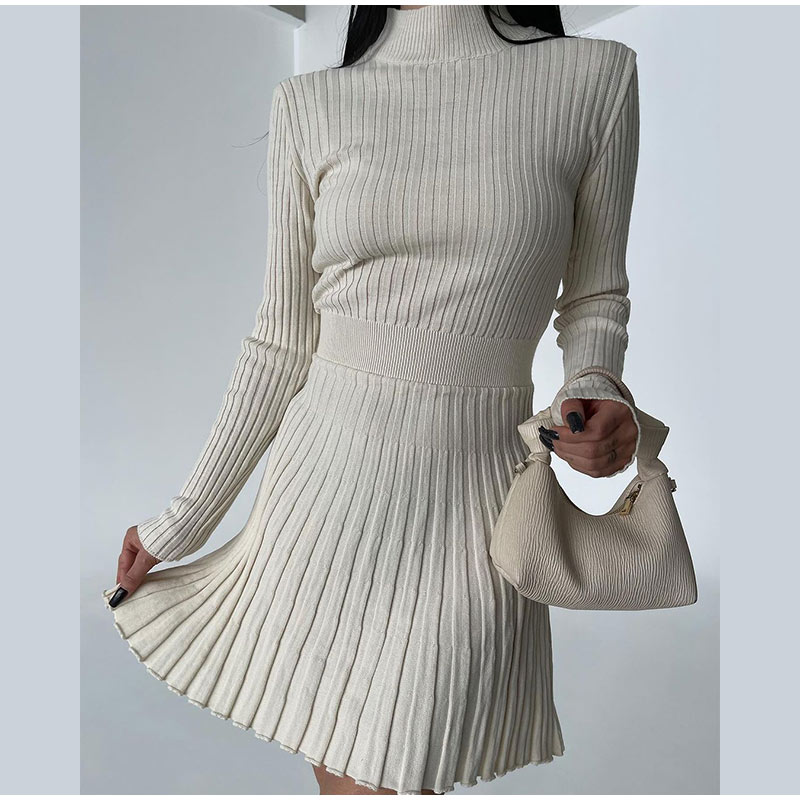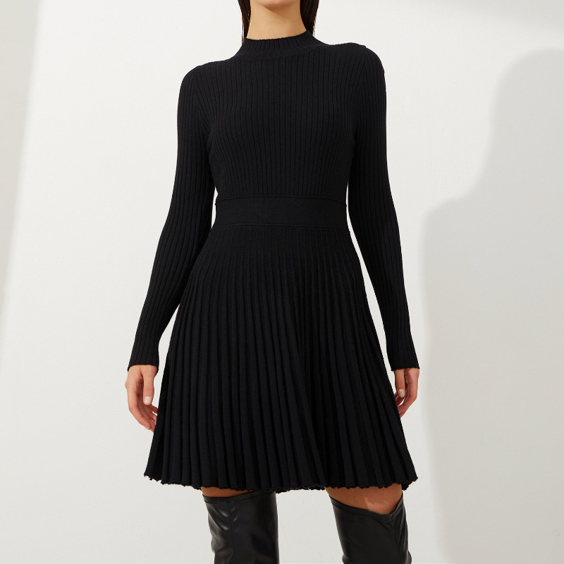Model Number: Women's Knitted Casual High Waisted O-neck Pleated Dress